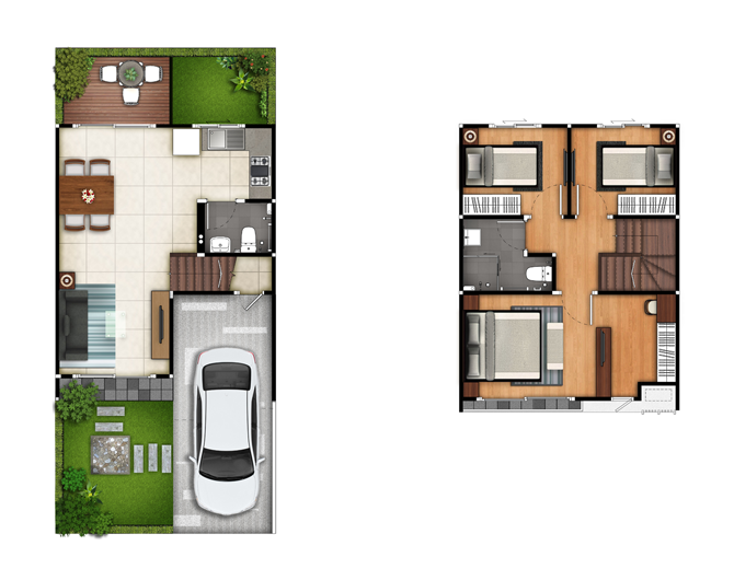 - ทาวน์โฮม 3 ห้องนอน 2 ห้องน้ำ หน้ากว้าง 5.7 เมตร