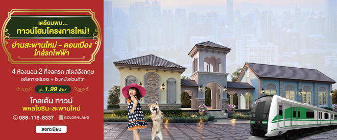 โกลเด้นแลนด์ เปิดให้จองโครงการใหม่ โกลเด้น ทาวน์ พหลโยธิน - สะพานใหม่ (Golden Town Phahonyothin - Sapanmai) เตรียมพบ ทาวน์โฮม โครงการใหม่ ย่านสะพานใหม่ - ดอนเมือง ใกล้รถไฟฟ้า กับ ทาวน์โฮมสไตล์อังกฤษ ที่ให้มากถึง 4 ห้องนอน 2 ที่จอดรถ พร้อมสโมสรและโรงหนังส่วนตัว ท่านที่สนใจสามารถลงทะเบียนจอง เพื่อรับส่วนลดพิ่ม 20,000 บาท* ได้ที่เว็บไซต์ของโกลเด้นแลนด์