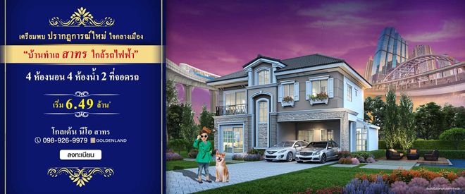 เตรียมพบ ปรากฏการณ์ใหม่ บ้านใจกลางเมือง!! จาก โกลเด้นแลนด์ โกลเด้น นีโอ สาทร (Golden Neo Sathorn) บ้านทำเลสาทร ติดถนนใหญ่ ใกล้รถไฟฟ้า พบกับบ้านหลังใหญ่ ขนาด 4 ห้องนอน 4 ห้องน้ำ 2 ที่จอดรถ ดีไซน์หรูหราสไตล์อังกฤษ อลังการสโมสรและสวนสวยธรรมชาติ ท่านที่สนใจสามารถลงทะเบียนรับส่วนลดเพิ่ม 30,000 บาท* ได้ที่เว็บไซต์ของโกลเด้นแลนด์