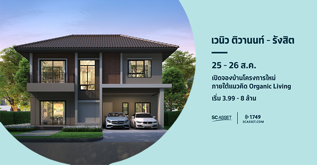 บริษัท เอสซี แอสเสท คอร์ปอเรชั่น จำกัด (มหาชน) เตรียมเปิดให้จองบ้านโครงการใหม่ "เวนิว ติวานนท์ - รังสิต (Venue Tiwanon - Rangsit)" ภายใต้แนวคิด Organic Living ให้คุณใช้ชีวิตใกล้ชิดธรรมชาติ พร้อมพักผ่อนกับสระว่ายน้ำความยาว 50 เมตร และ Sport Complex ขนาดใหญ่ บนทำเลศักยภาพ ติดถนนใหญ่ติวานนท์ ใกล้ทางด่วนศรีรัช (ด่านบางพูนและด่านศรีสมาน) พบกันวันที่ 25 - 26 สิงหาคม 2561 นี้ และเปิดให้ผู้ที่สนใจลงทะเบียนรับสิทธิพิเศษที่ลิงก์ด้านล่าง