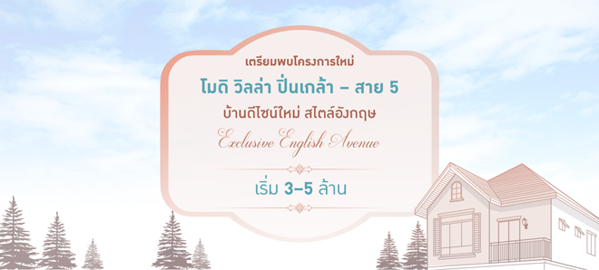 โมดิ วิลล่า ปิ่นเกล้า - สาย 5 บ้านดีไซน์ใหม่ สไตล์อังกฤษ ใกล้รถไฟฟ้าสายสีม่วง เริ่ม 3-5 ล้านบาท*