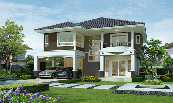 3. แบบบ้านศุภฤทัย - บ้านเดี่ยว 2 ชั้น พื้นที่ใช้สอย 197 ตร.ม. สร้างบนที่ดินตั้งแต่ 57 ตร.ว.ขึ้นไป ขนาด 4 ห้องนอน 3 ห้องน้ำ 1 ห้องพักผ่อน พร้อมที่จอดรถ 2 คัน