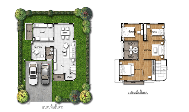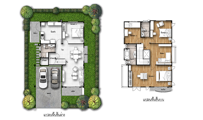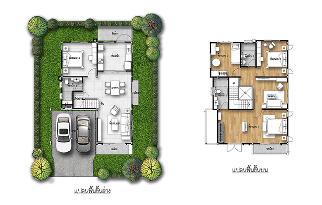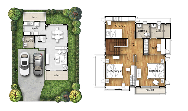แปลนบ้านชั้น 1 แปลนบ้านชั้น 2