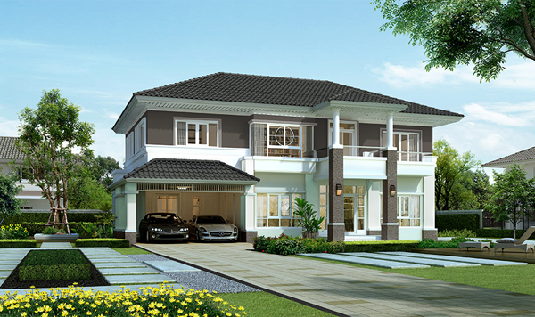 2. แบบบ้านศุภจิตรา - บ้านเดี่ยว 2 ชั้น พื้นที่ใช้สอย 232 ตร.ม. สร้างบนที่ดินตั้งแต่ 58 ตร.ว.ขึ้นไป ขนาด 3 ห้องนอน 4 ห้องน้ำ 1 ห้องทำงาน 1 ห้องคนรับใช้ พร้อมที่จอดรถ 2 คัน