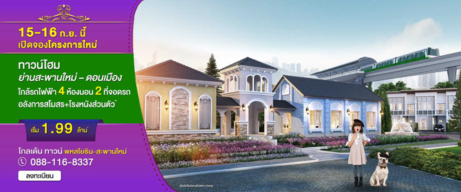 15-16 ก.ย. นี้ โกลเด้นแลนด์ เปิดจองโครงการใหม่ ย่านสะพานใหม่-ดอนเมือง กับ โกลเด้น ทาวน์ พหลโยธิน - สะพานใหม่ (Golden Town Phahonyothin - Sapanmai) เตรียมพบ ทาวน์โฮม โครงการใหม่ ย่านสะพานใหม่-ดอนเมือง ใกล้รถไฟฟ้า กับ ทาวน์โฮมสไตล์อังกฤษ ที่ให้มากถึง 4 ห้องนอน 2 ที่จอดรถ พร้อมสโมสรและโรงหนังส่วนตัว *ท่านที่สนใจสามารถลงทะเบียนจองเพื่อรับส่วนลดพิ่ม 20,000 บาท* ได้ที่เว็บไซต์ของโกลเด้นแลนด์