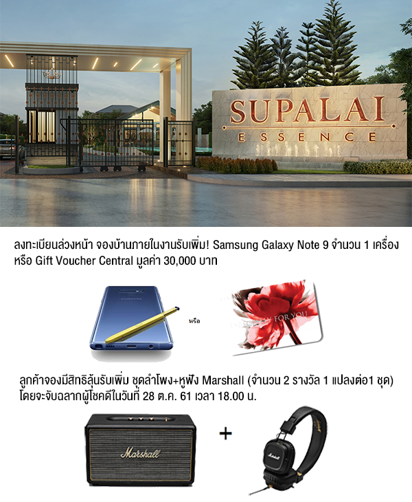 ลงทะเบียนล่วงหน้า จองบ้านภายในงานรับเพิ่ม! Samsung Galaxy Note 9 จำนวน 1 เครื่อง หรือ Gift Voucher Central มูลค่า 30,000 บาท