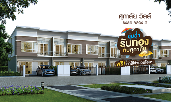 โปรโมชั่น: "ศุภาลัย วิลล์ รังสิต คลอง 2" ทาวน์โฮม สร้างเสร็จ พร้อมเข้าอยู่ เริ่ม 1.99 ล้าน ริมถนนรังสิต-นครนายก เดินทางสะดวก แวดล้อมด้วยสถานที่สำคัญมากมาย เช่น ฟิวเจอร์ปาร์ค รังสิต โลตัส โรงเรียนโชคชัย และโรงพยาบาลเปาโล พบโปรดีๆ ชุ่มฉ่ำ รับทองกับศุภาลัย ฟรี*