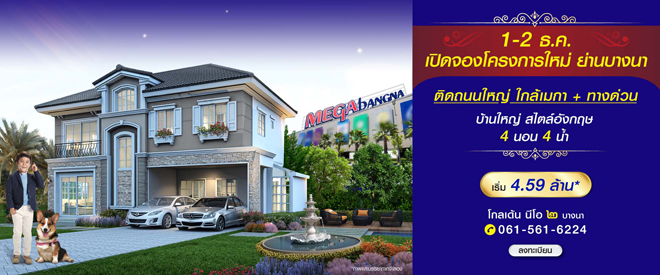โกลเด้น นีโอ ๒ บางนา - กิ่งแก้ว (Golden Neo ๒ Bangna - Kingkaew) บ้านโครงการใหม่! จาก โกลเด้นแลนด์ 1 - 2 ธ.ค. นี้ เตรียมพบ บ้านนีโอ โฮม โครงการใหม่ ย่านบางนา! ที่สุดบนทำเลศักยภาพ ติดถนนใหญ่ ใกล้เมกา+ทางด่วน กับบ้านแนวคิดใหม่ ตอบโจทย์มาเพื่อคุณ ทั้งการใช้ชีวิตและการอยู่อาศัยในทำเลศักยภาพ บ้านรุ่นใหม่ สไตล์อังกฤษ 4 ห้องนอน 4 ห้องน้ำ อลังการสโมสร+โรงหนังส่วนตัว พร้อมสวนธรรมชาติรอบโครงการ ท่านที่สนใจสามารถลงทะเบียนรับส่วนลดเพิ่ม 30,000 บาท* ได้ที่เว็บไซต์ของโกลเด้นแลนด์