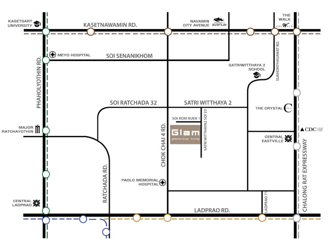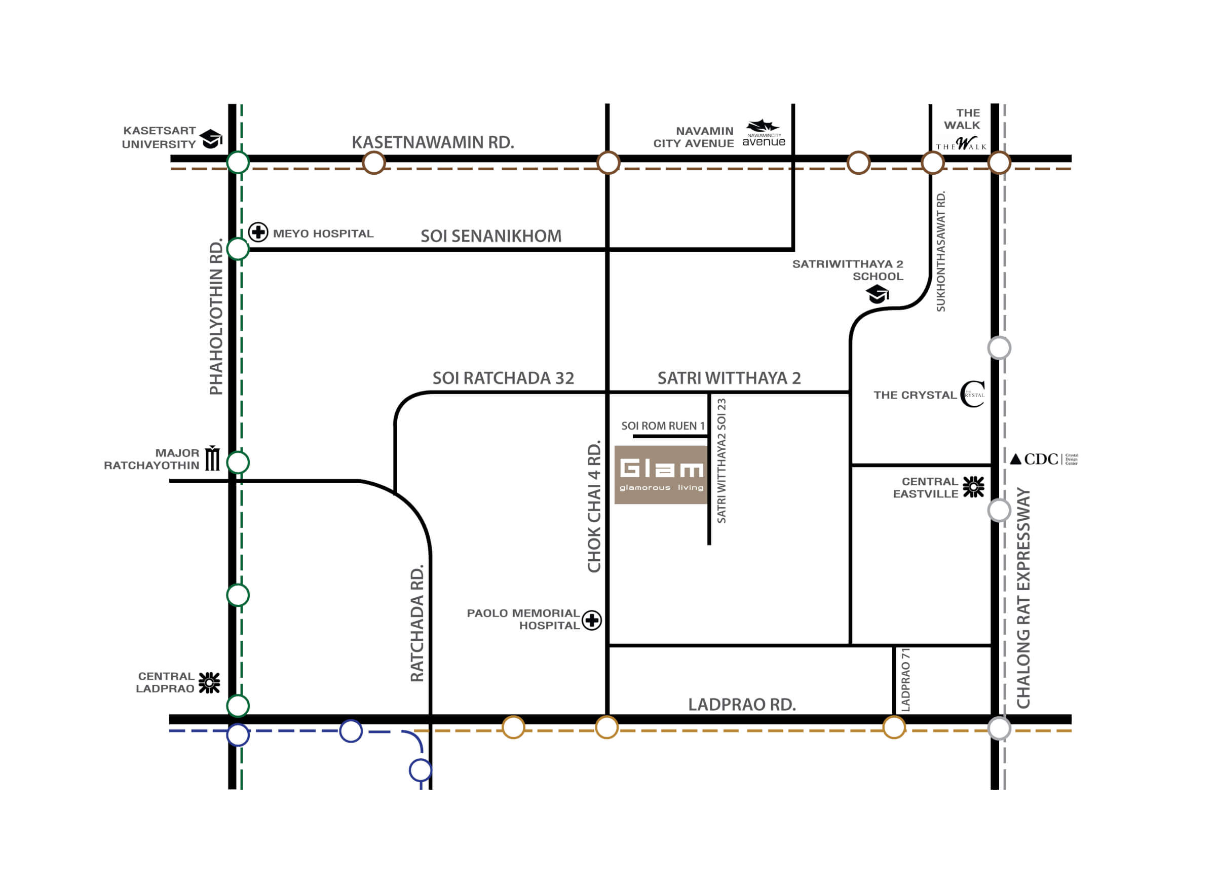 Glam Glamorous Living ลาดพร้าว ตั้งอยู่บนทำเลศักยภาพ ย่านลาดพร้าว - โชคชัย 4 เป็นย่านที่เต็มไปด้วยแหล่งไลฟ์สไตล์ เหมาะสำหรับการใช้ชีวิตสไตล์คนเมือง สัมผัสเสน่ห์ที่อยู่อาศัย ในรูปแบบที่คุณคาดไม่ถึงได้แล้ววันนี้