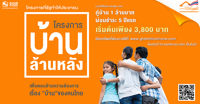นายฉัตรชัย ศิริไล กรรมการผู้จัดการธนาคารอาคารสงเคราะห์ (ธอส.) เผยว่า ที่ประชุมคณะรัฐมนตรีในวันที่ 20 พฤศจิกายน 2561 ได้มีมติเห็นชอบให้ ธอส. จัดทำ "โครงการบ้านล้านหลัง" ภายใต้วงเงินรวม 60,000 ล้านบาท เพื่อสนับสนุนนโยบายรัฐบาลที่ต้องการช่วยเหลือให้ประชาชนได้มีที่อยู่อาศัยเป็นของตนเอง โดยมุ่งเน้นกลุ่มผู้มีรายได้น้อย กลุ่มคนวัยทำงานหรือผู้ที่กำลังเริ่มต้นสร้างครอบครัว รวมถึงกลุ่มผู้สูงอายุ แบ่งเป็น
