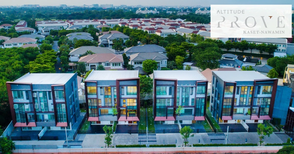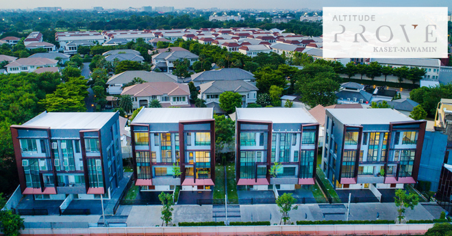 บริษัท อัลติจูด ดีเวลลอปเม้นท์ จำกัด ผู้พัฒนาโครงการ อัลติจูด พรูฟ เกษตร-นวมินทร์ (Altitude Prove Kaset-Nawamin) เป็นโฮมออฟฟิศ 4 ชั้น พื้นที่ 44.7-77.9 ตร.ว. มีพื้นที่ใช้สอย 339-375 ตร.ม. จำนวน 8 ยูนิต บนถนนลาดปลาเค้า เชื่อมระหว่างถนนรามอินทรา ถ.เกษตร-นวมินทร์ ซึ่งโครงการห่างจากถนนรามอินทราเพียง 700 เมตร การดีไซน์ Double Volume กับบานกระจกหน้าต่างทรงสูง ใช้วัสดุก่อสร้างเกรดพรีเมียม ระบบไฟ LED พื้นชั้นล่างเป็นกระเบื้อง ชั้นบนเป็นไวนิลลายไม้ ทนต่อการขูดขีด และการใช้งานในรูปแบบสำนักงาน