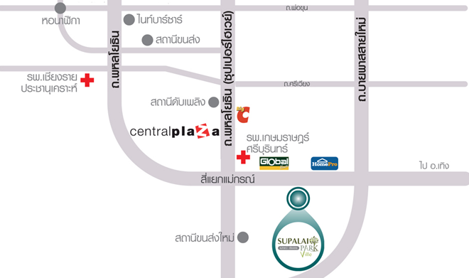แผนที่โครงการ ศุภาลัย พาร์ควิลล์ แม่กรณ์-เชียงราย