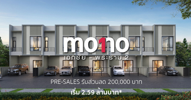"โมโน เอกชัย - พระราม 2" ทาวน์โฮมดีไซน์ใหม่ Pre-sales รับส่วนลด 200,000 บาท เริ่ม 2.59 ล้านบาท*