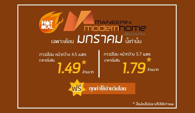 โปรโมชั่น: "มณีรินทร์ โมเดิร์นโฮม บ่อวิน" ฉลองต้นปีด้วยโปรโมชั่นสุดพิเศษ เฉพาะเดือน มกราคม 2562 นี้เท่านั้น ฟรี !! ทุกค่าใช้จ่ายวันโอน ใกล้นิคมอุตสาหกรรมหลายแห่ง ใกล้ถนนสาย 331 รปภ. 24 ชั่วโมง มีสิ่งอำนวยความสะดวกในโครงการครบครัน