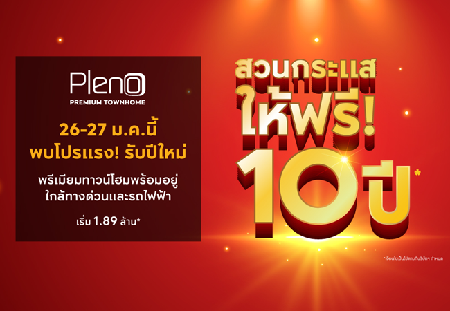 โปรโมชั่น: Pleno Premium Townhome 26 - 27 มกราคม 2562 นี้ รับโปรฯ แรง สวนกระแส พลีโน่ ให้ฟรี 10 ปี* พรีเมียมทาวน์โฮมพร้อมอยู่ เริ่ม 1.89 ล้านบาท* ลงทะเบียนรับสิทธิพิเศษ VIP 200 ท่านแรก* (สิทธิ์มีจำนวนจำกัด) พร้อมรับข้อมูลเพิ่มเติมก่อนวันงาน ดูโครงการที่เข้าร่วมโปรโมชั่นและลงทะเบียนรับส่วนลดสูงสุด 50,000 บาทได้ที่นี่