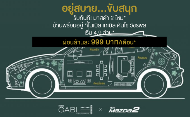 โปรโมชั่น: อยู่สบาย ขับสนุก รับทันที! มาสด้า 2 ใหม่ โนเบิล เกเบิล คันโซ วัชรพล บ้านพร้อมอยู่ เริ่ม 4.9 ล้านบาท* ผ่อนล้านละ 999 บาท/เดือน* ดูเงื่อนไขโปรโมชั่นที่นี่