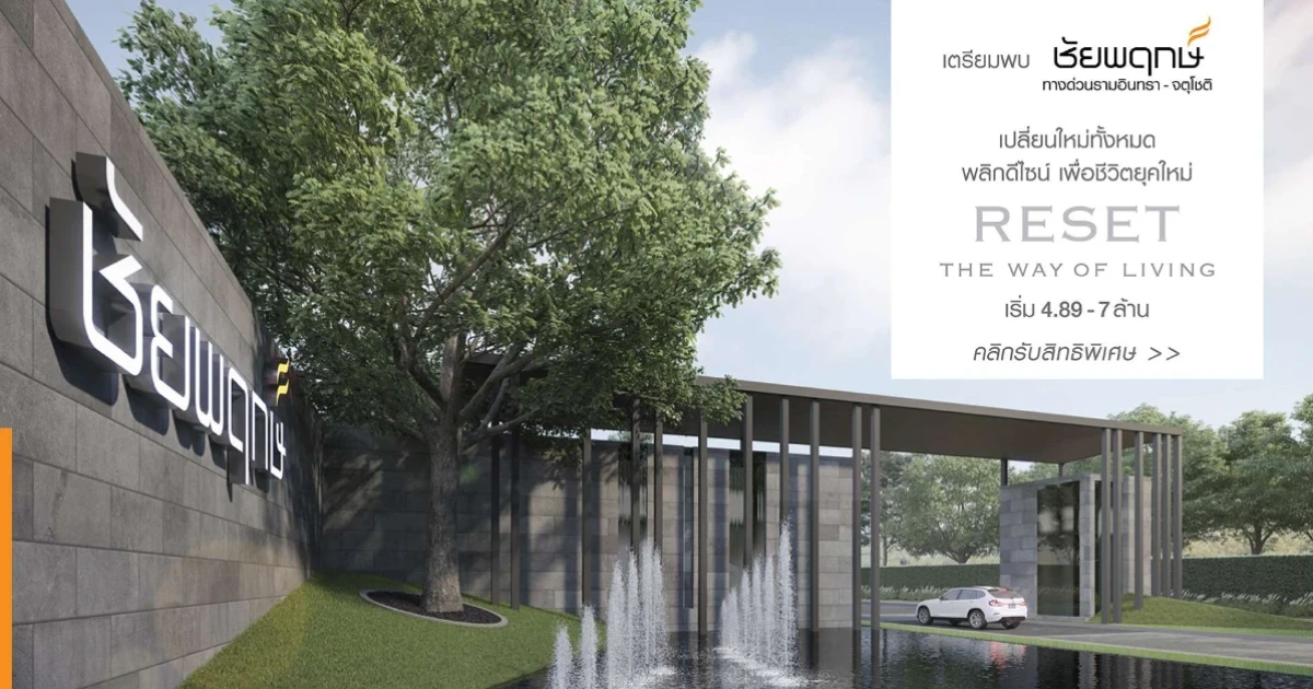 บริษัท แลนด์ แอนด์ เฮ้าส์ จำกัด (มหาชน) เตรียมเปิดตัวโครงการใหม่ "ชัยพฤกษ์ ทางด่วนรามอินทรา - จตุโชติ (Chaiyapruk Ramindra Expressway - Jatuchote)" Reset the way of living เปลี่ยนใหม่ทั้งหมด พลิกดีไซน์ เพื่อชีวิตยุคใหม่ เลือกแปลงสวยพร้อมราคาพิเศษ ในวัน VIP DAY ก่อนใคร คลิกลงทะเบียนรับสิทธิพิเศษ วันนี้ - 28 กุมภาพันธ์ 2562