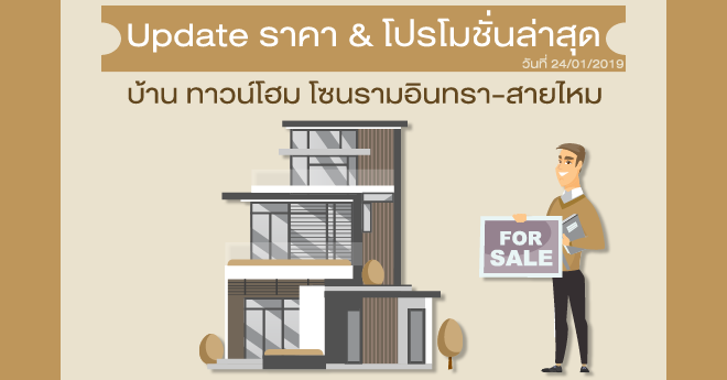 Update ราคา & โปรโมชั่น บ้านทาวน์โฮม โซนรามอินทรา-สายไหม น่าสนใจล่าสุด ณ วันที่ 21 มกราคม 2562