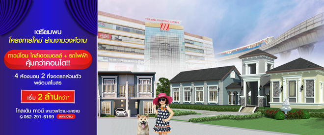 โกลเด้นแลนด์ เปิดให้จองแล้ว โกลเด้น ทาวน์ งามวงศ์วาน-แคราย (Golden Town Ngamwongwan-Khaerai) ทาวน์โฮมโครงการใหม่ ย่านงามวงศ์วาน-แคราย ที่สุดของทาวน์โฮม ใกล้เดอะมอลล์ งามวงศ์วาน ใกล้รถไฟฟ้าสายสีม่วง 4 ห้องนอน 2 ที่จอดรถส่วนตัว พร้อมสโมสร ท่านที่สนใจสามารถลงทะเบียนเพื่อรับส่วนลดเพิ่ม 20,000 บาท* ได้ที่เว็บไซต์ของโกลเด้นแลนด์