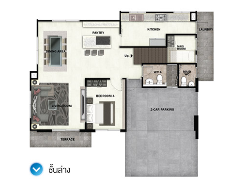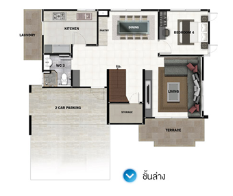 4. Vicia S - บ้านเดี่ยว 2 ชั้น พื้นที่ใช้สอย 147 ตร.ม. ขนาด 4 ห้องนอน 3 ห้องน้ำ 1 ห้องพักผ่อนรับแขก 1 พื้นที่รับประทานอาหาร 1 ห้องครัว 2 ที่จอดรถ