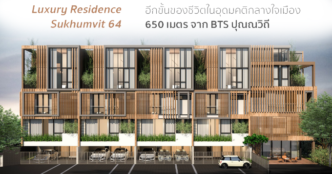 "แกลอเรีย 64" ทาวน์โฮมหรูทำเลสุขุมวิท 64 พร้อมลิฟท์ส่วนตัว เริ่ม 21.9 ลบ. ลงทะเบียนรับสิทธิพิเศษ