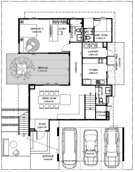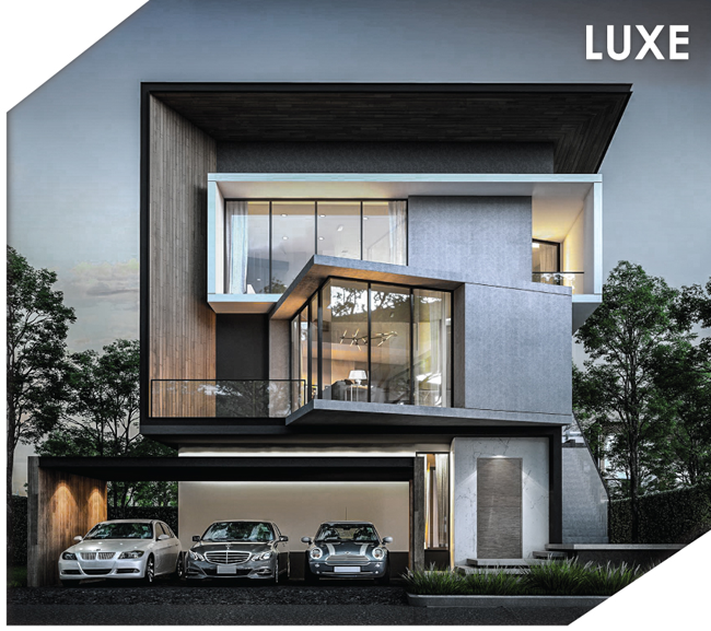 3. LUXE - บ้านเดี่ยว 3 ชั้น ที่ดินเริ่มต้น 76 ตร.ว. พื้นที่ใช้สอย 470 ตร.ม. ขนาด 4 ห้องนอน 4 ห้องน้ำ 1 ห้องนั่งเล่น 1 ห้องครัว 1 ห้องน้ำแขก 1 ห้องแม่บ้าน 3 ที่จอดรถ