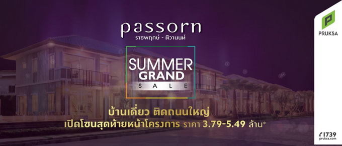 โปรโมชั่น : "ภัสสร ราชพฤกษ์ - ติวานนท์" Summer Grand Sale บ้านเดี่ยว ติดถนนใหญ่ เปิดโซนสุดท้ายหน้าโครงการ ราคา 3.79 - 5.49 ล้านบาท ลงทะเบียนเพื่อรับสิทธิ์ก่อนใครที่นี่