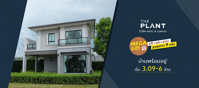 โปรโมชั่น : "เดอะ แพลนท์ วงแหวน - ลำลูกกาคลอง 5" Mega Gift ฟรี - ลด - แถม สูงสุดกว่า 6 แสนบาท* บ้านพร้อมอยู่ เริ่ม 3.99 ล้านบาท*