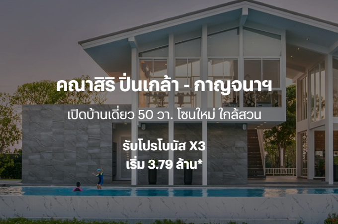โปรโมชั่น: "คณาสิริ ปิ่นเกล้า - กาญจนาฯ" เปิดบ้านเดี่ยว 50 ตร.ว. โซนใหม่ ใกล้สวน รับโปรฯ โบนัส X3 ราคาเริ่ม 3.79 ล้านบาท*
