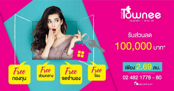 โปรโมชั่น: "บ้านฟ้า ทาวน์นี่ ปิ่นเกล้า - สาย 5" รับส่วนลด 100,000 บาท* Free กองทุน Free ส่วนกลาง Free จดจำนอง Free โอน เริ่มเพียง 2.69 ล้านบาท