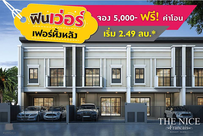 โปรโมชั่น : หลบร้อนมาฟินเว่อร์! เฟอร์ฯ ทั้งหลัง กับ เดอะนีซ รังสิต-คลองสาม วันนี้! จองเพียง 5,000 ฟรีไปเลย ค่าโอน!!!