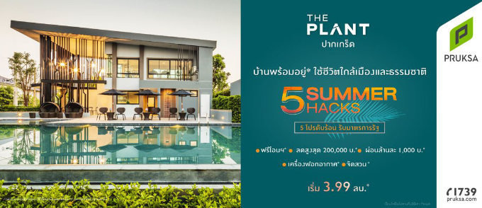 โปรโมชั่น : "เดอะ แพลนท์ ปากเกร็ด" บ้านพร้อมอยู่* ใช้ชีวิตใกล้เมืองและธรรมชาติ "5 Summer Hacks" 5 โปรฯดับร้อน รับมาตรการรัฐ เริ่ม 3.99 ล้านบาท*