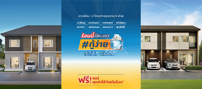 โปรโมชั่น : "ร้อนนี้ มีหนาว" #กู้ง่าย Stay Cool ฟรี! แอร์ และค่าใช้จ่ายวันโอน* ทาวน์โฮม 13 โครงการคุณภาพ 8 ทำเล บางใหญ่ | บางบัวทอง | ราชพฤกษ์ | แจ้งวัฒนะ | ศาลายา | เพชรเกษม | พระราม 2 | สขุสวัสดิ์
