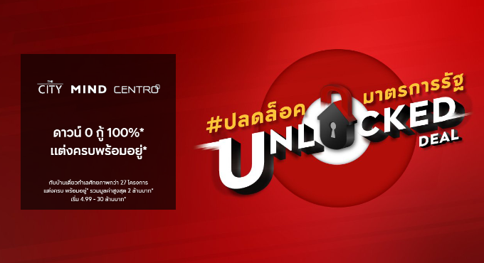 โปรโมชั่น : #ปลดล็อคมาตรการรัฐ!! Unlocked Deal ดาวน์ 0 กู้ 100%* แต่งครบพร้อมอยู่* กับเฟอร์นิเจอร์+เครื่องใช้ไฟฟ้า มูลค่าสูงสุด 2 ล้านบาท* กับบ้านเดี่ยวพร้อมอยู่ 7 ทำเลศักยภาพ กว่า 27 โครงการ เริ่ม 4.99 - 30 ล้านบาท*