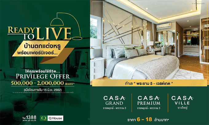 โปรโมชั่น: บ้านตกแต่งหรู พร้อมเฟอร์นิเจอร์ บนทำเลแปลงที่ดีที่สุดในโครงการ ให้คุณพร้อมใช้ชีวิต พิเศษรับ Privilege Offer 500,000 - 2,000,000 บาท เมื่อโอนภายใน 15 มิ.ย. 2562