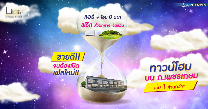 โปรโมชั่น: "ไลโอ บลิสซ์ เพชรเกษม - ยอแซฟ 2" ขายดี!! จนต้องเปิดเฟสใหม่!! ทาวน์โฮม บน ถ.เพชรเกษม แอร์ + โอน 0 บาท ฟรี!! ส่วนกลาง+จัดสวน เริ่ม 1 ล้านกว่า*