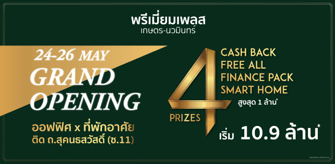 "พรีเมี่ยม เพลส เกษตร - นวมินทร์" PREMIUM HOME OFFICE 4 ชั้น เริ่ม 10.9 ลบ. พบกัน 24-26 พ.ค. นี้