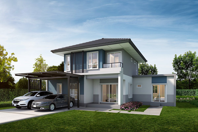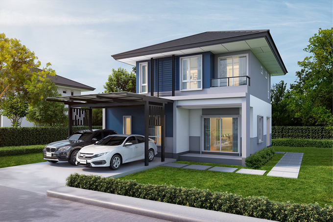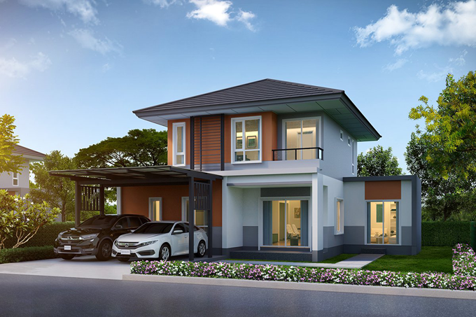 5. Jasmine rice (หอมมะลิ) - บ้านเดี่ยว พื้นที่ใช้สอย 138 ตร.ม. ประกอบด้วย 3 ห้องนอน, 3 ห้องน้ำ, 1 ห้องรับแขก, ส่วนรับประทานอาหาร, ห้องครัวไทย และที่จอดรถ 2 คัน *