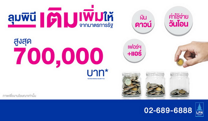 โปรโมชั่น: ลุมพินีเติมเต็มให้ จากมาตรการรัฐ เติมให้สูงสุดกว่า 700,000 บาท* โครงการบ้านลุมพินี 6 ทำเล