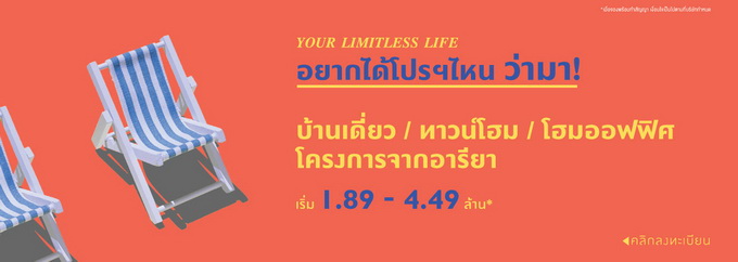 โปรโมชั่น: Your Limitess Life อยากได้โปรฯ ไหน ว่ามา! บ้านเดี่ยว ทาวน์โฮม โฮมออฟฟิศ โครงการจากอารียา เริ่ม 1.89 - 4.49 ล้านบาท*
