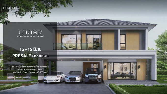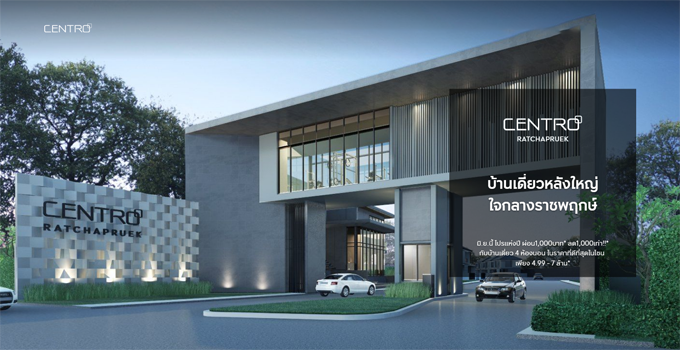 โปรโมชั่น: "Centro วงแหวน - จตุโชติ" 15 - 16 มิถุนายน 2562 นี้ เปิดจองบ้านเดี่ยวโครงการใหม่ ฟังก์ชันครบ ด้วย 4 ห้องนอน 3 ที่จอดรถ เพียง 5 นาที จากทางด่วนรามอินทรา* เริ่ม 5 - 8 ล้าน* ลงทะเบียนลด 100,000 บาท*