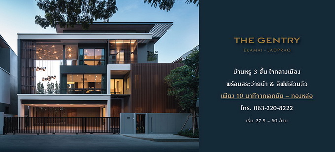 โปรโมชั่น: "เดอะ เจนทริ เอกมัย - ลาดพร้าว (The Gentry Ekamai - Ladprao)" 29 - 30 มิถุนายน 2562 นี้ GRAND OPENING รับสูงสุด 6,000,000 บาท* เปิดพูลวิลล่า 3 ชั้น ซีรีส์ใหม่ 5 ห้องนอน 7 ห้องน้ำ พร้อมสระว่ายน้ำ และลิฟท์ส่วนตัว ใจกลางเมือง ส่วนตัวเพียง 16 ครอบครัว เพียง 10 นาที จากเอกมัย-ทองหล่อ ใกล้ทางด่วน ใกล้สถานีรถไฟฟ้า ใกล้โรงเรียนนานาชาติชั้นนำ เริ่ม 27.9 - 60 ล้าน ลงทะเบียนเพื่อรับสิทธิพิเศษ http://bit.ly/2JfOy2b