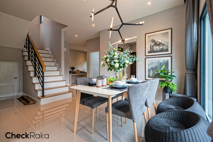 3. แบบบ้าน MONZA - บ้านเดี่ยว 2 ชั้น พื้นที่ใช้สอย 190 ตร.ม. 4 ห้องนอน 3 ห้องน้ำ 1 ห้องนั่งเล่น 1 โซนอเนกประสงค์ชั้นบน ที่จอดรถ 2 คัน (ในร่ม)