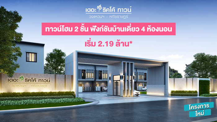 "เดอะ ริคโค้ ทาวน์ วงแหวน - หทัยราษฎร์" ทาวน์โฮม 2 ชั้น ฟังก์ชันบ้านเดี่ยว เริ่ม 2.19 ล้านบาท*