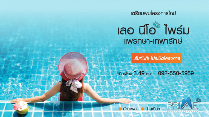 เตรียมพบโครงการใหม่ "เลอ นีโอ ไพร์ม แพรกษา - เทพารักษ์" บ้านเดี่ยว บ้านแฝด เริ่ม 3.49 ลบ.