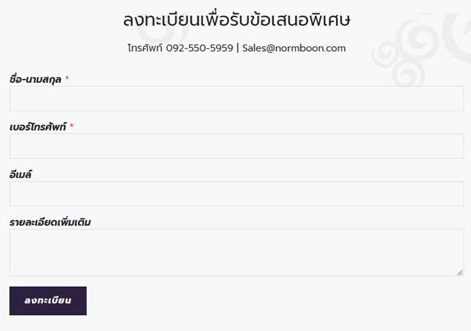 สอบถามรายละเอียดเพิ่มเติมได้ที่ Call Center : 02-395-1279 เว็บไซต์ http://www.normboon.com