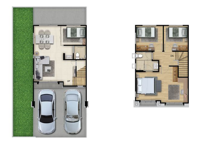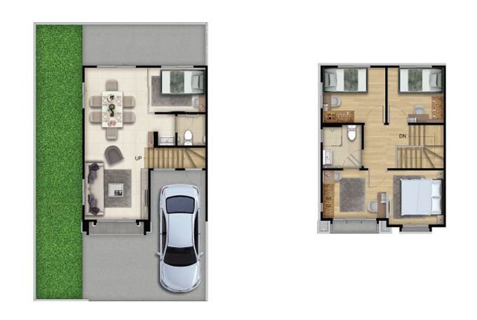 1. COLONY - ทาวน์โฮม 2 ชั้น หน้ากว้าง 5.7 เมตร พื้นที่ใช้สอย ประมาณ 116 ตารางเมตร ขนาดแปลงที่ดินเริ่มต้น 18.0 ตารางวา ขนาด 4 ห้องนอน 2 ห้องน้ำ 1 ที่จอดรถ