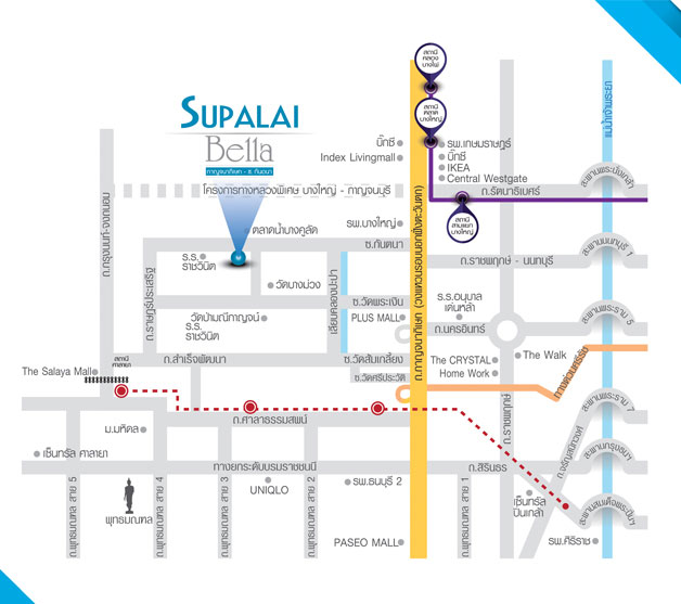 - เดินทางง่าย ใกล้รถไฟฟ้า 2 สาย (สายสีม่วงและสีแดงอ่อน)
