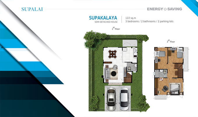 2. ศุภกัลยา - บ้านรุ่นใหม่ 2 ชั้น พื้นที่ใช้สอย 122 ตร.ม. 3 ห้องนอน 2 ห้องน้ำ ที่จอดรถ 2 คัน