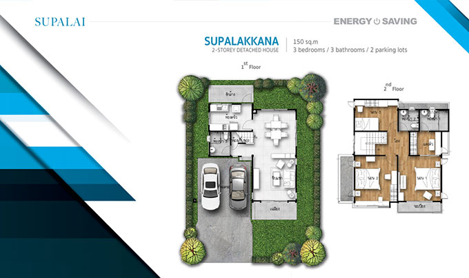 3. ศุภลักขณา - บ้านเดี่ยว 2 ชั้น พื้นที่ใช้สอย 150 ตร.ม. 3 ห้องนอน 3 ห้องน้ำ ที่จอดรถ 2 คัน